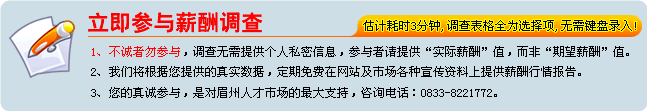 ★眉州人才市場薪酬調查,因為您的參與而加更精彩!